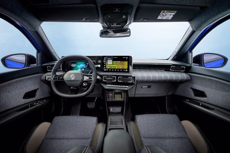 À l'intérieur, la R5 offre un habitacle spacieux pour sa catégorie, avec une hauteur sous plafond généreuse (1,40 m à l'avant) qui permet une position de conduite surélevée et naturelle, idéale pour une visibilité optimale en milieu urbain. Les sièges en tissu recyclé, chauffants de série, enveloppent correctement le conducteur et le passager avant, avec un soutien lombaire ajustable qui atténue les trajets prolongés. Le tableau de bord minimaliste, dominé par un double écran incurvé de 10 pouces (instrumentation) et 10,1 pouces (multimédia), crée une ambiance high-tech immersive, où les commandes vocales et tactiles répondent avec fluidité. Cependant, l'espace arrière reste limité pour trois adultes – les genoux frôlent les dossiers avant – et le coffre de 277 litres (extensible à 887 litres sièges rabattus) peine à avaler des bagages volumineux, un point faible pour les familles ou les professionnels nomades. Les rangements sont astucieux, comme le vide-poches central éclairé, mais l'absence de bec de casseau et les plastiques durs sur les contre-portes trahissent un budget contenu. On s'y sent comme dans un cocon moderne, avec une insonorisation remarquable qui isole des bruits extérieurs, mais une modularité accrue aurait été bienvenue.
