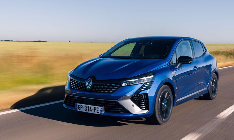 Le design extérieur de la Clio E-Tech 2025 affine les lignes de sa devancière sans révolution, optant pour une évolution mesurée qui privilégie l'aérodynamisme et la compacité. La face avant, dominée par la calandre "en losange" élargie et les phares LED affûtés, confère une expression plus assurée, presque SUV-like, qui s'harmonise bien avec les jantes de 16 pouces en alliage (de série sur Équilibre). Les flancs sculptés, avec des passages de roue marqués, accentuent la posture athlétique, tandis que l'arrière gagne en modernité grâce à des feux traversants et un becquet subtil. Les coloris bi-ton (comme le Bleu Ironstone avec toit noir) ajoutent une touche de personnalisation accessible, idéale pour différencier une flotte d'entreprise.