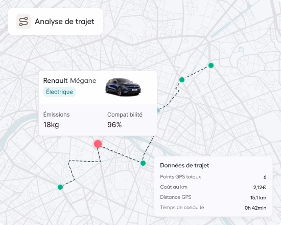 Evera Fleet analyse les trajets réalisés (kilométrage quotidien, temps d’arrêt, régularité) pour déterminer les profils réellement adaptés à un passage à l’électrique.