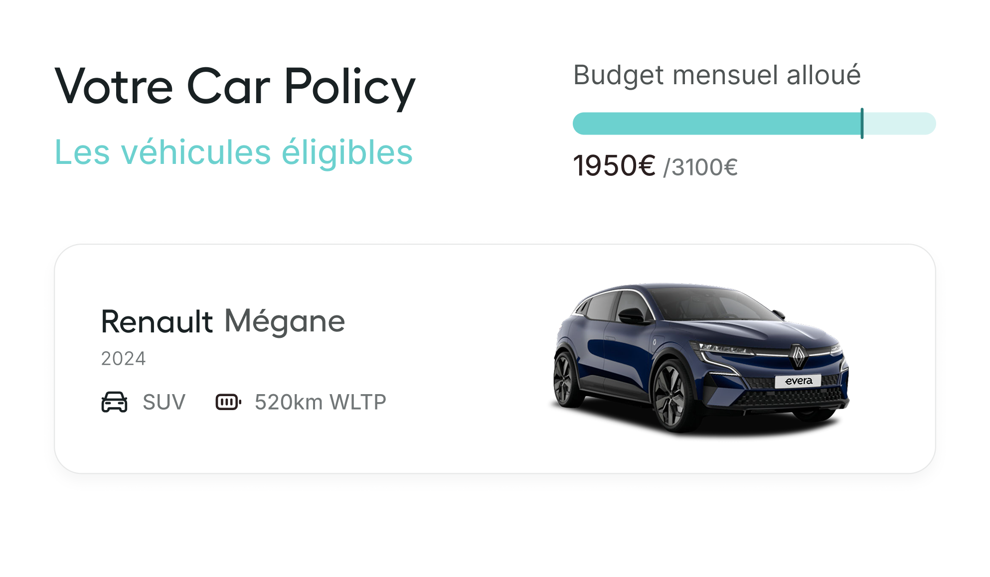 Définissez vos règles d’attribution, les véhicules autorisés, les budgets mobilité et les usages.